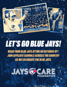 Affiliate schools are celebrating the Toronto Blue Jays on Wednesday, Oct 15th. Please wear your Jays gear or all blue to support our home team!!