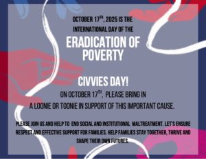 Please help support this important cause! Students who bring in a loonie or toonie will partake in our first civvies day of the year.